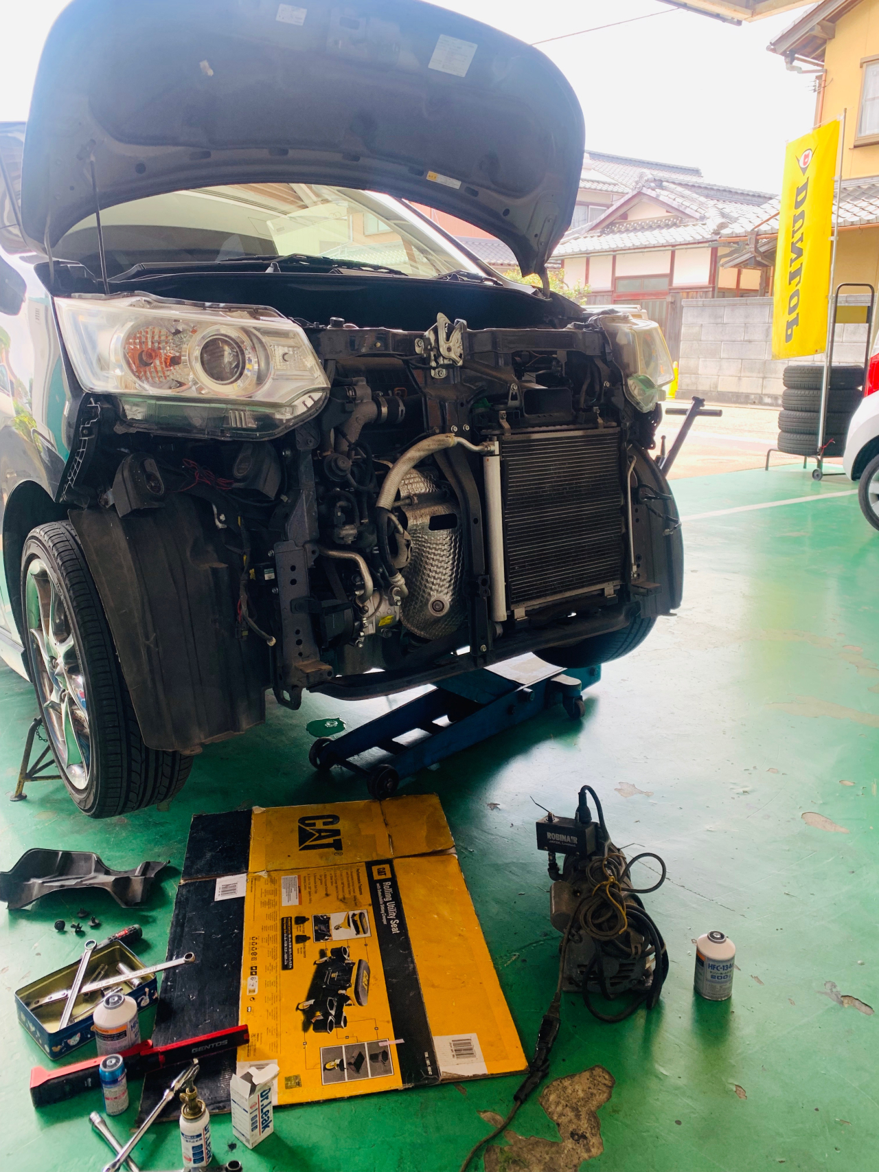 とにかくエアコン修理が・・・隙間に車検や修理お客様と笑顔のひと時